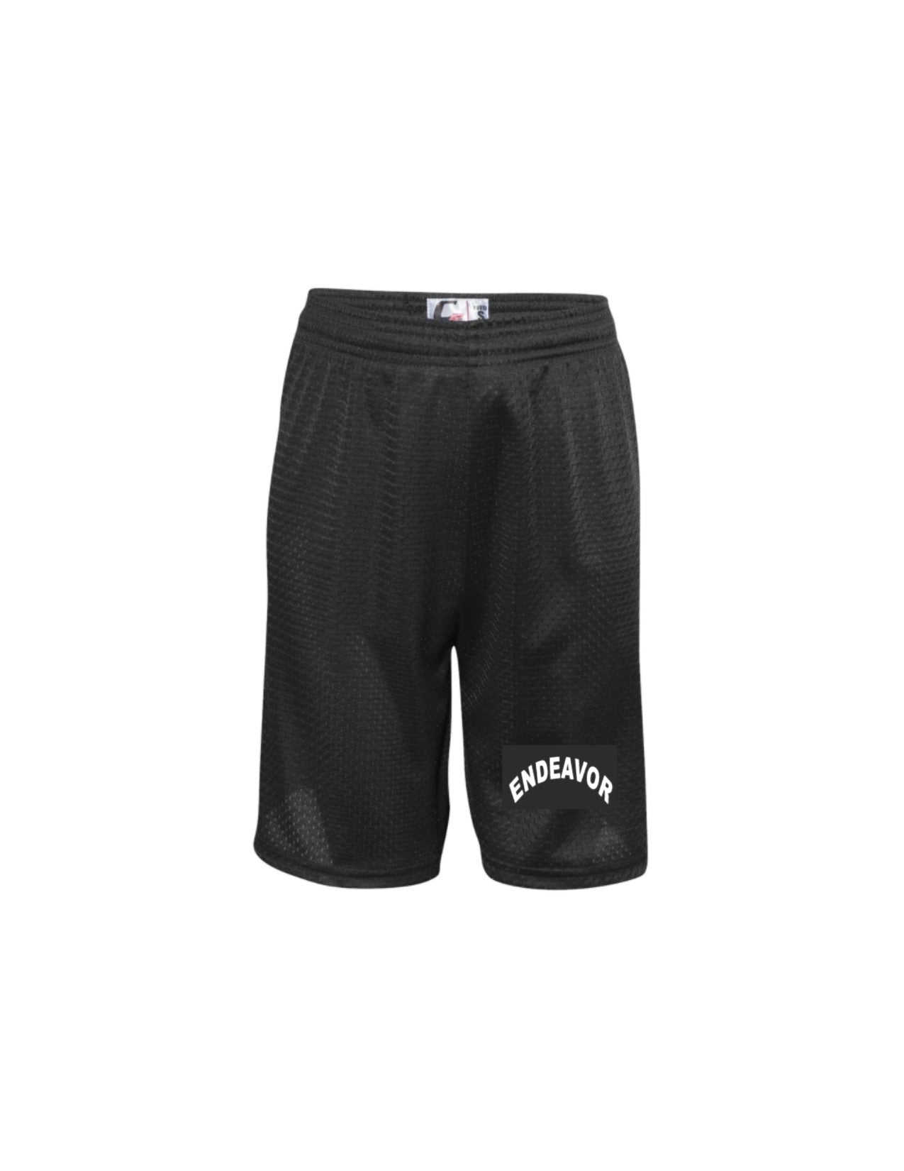 Show your team spirit on the court the playground. Endeavor logo on left short leg. 9 inch inseam. 100% polyester.